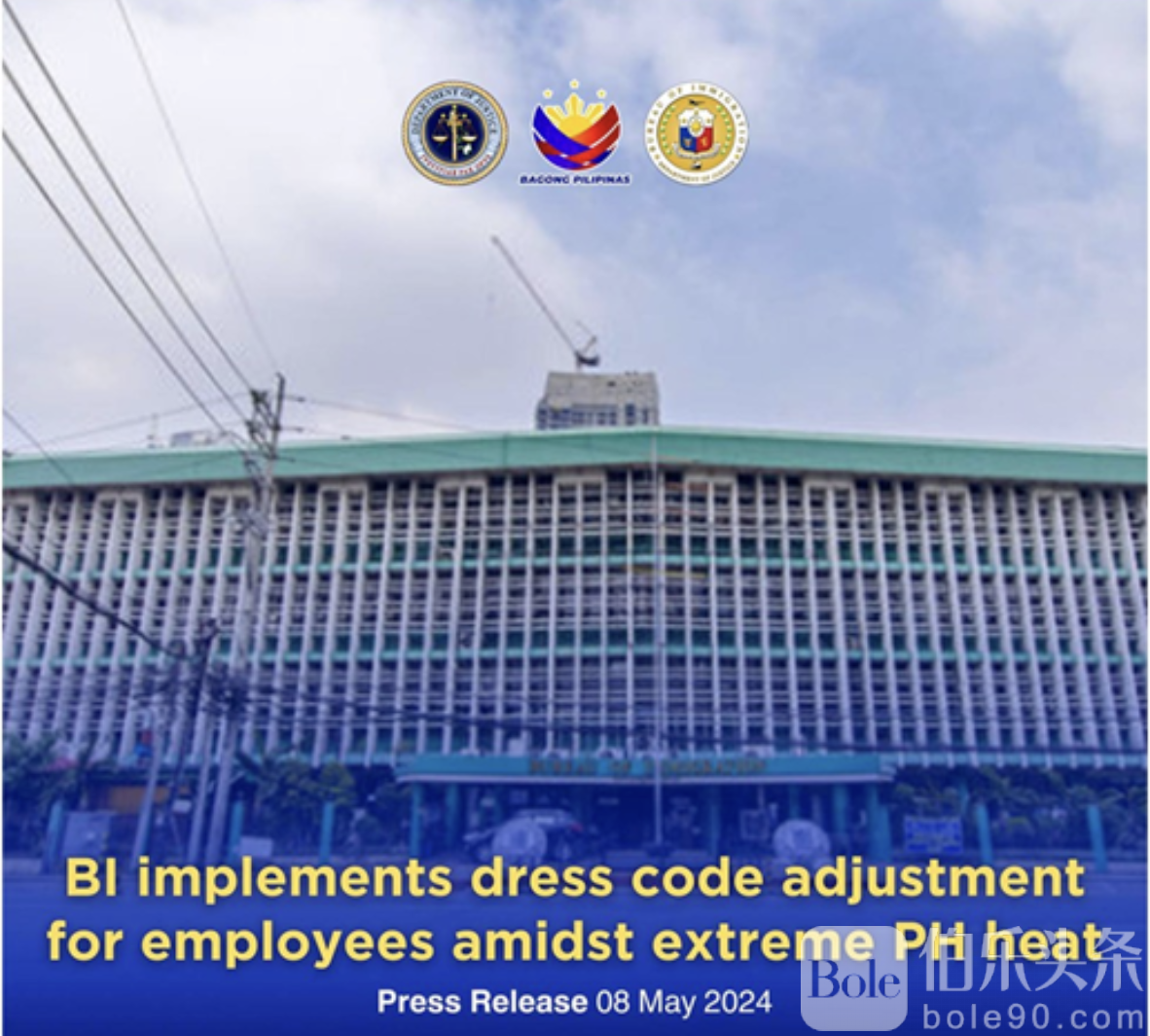 为应对持续的极端高温,菲律宾移民局(BI)调整了员工的着装规范。从5月7日至5月31日,所有行政部门员工可穿商务休闲装,以提高在高温天气下的工作舒适度。