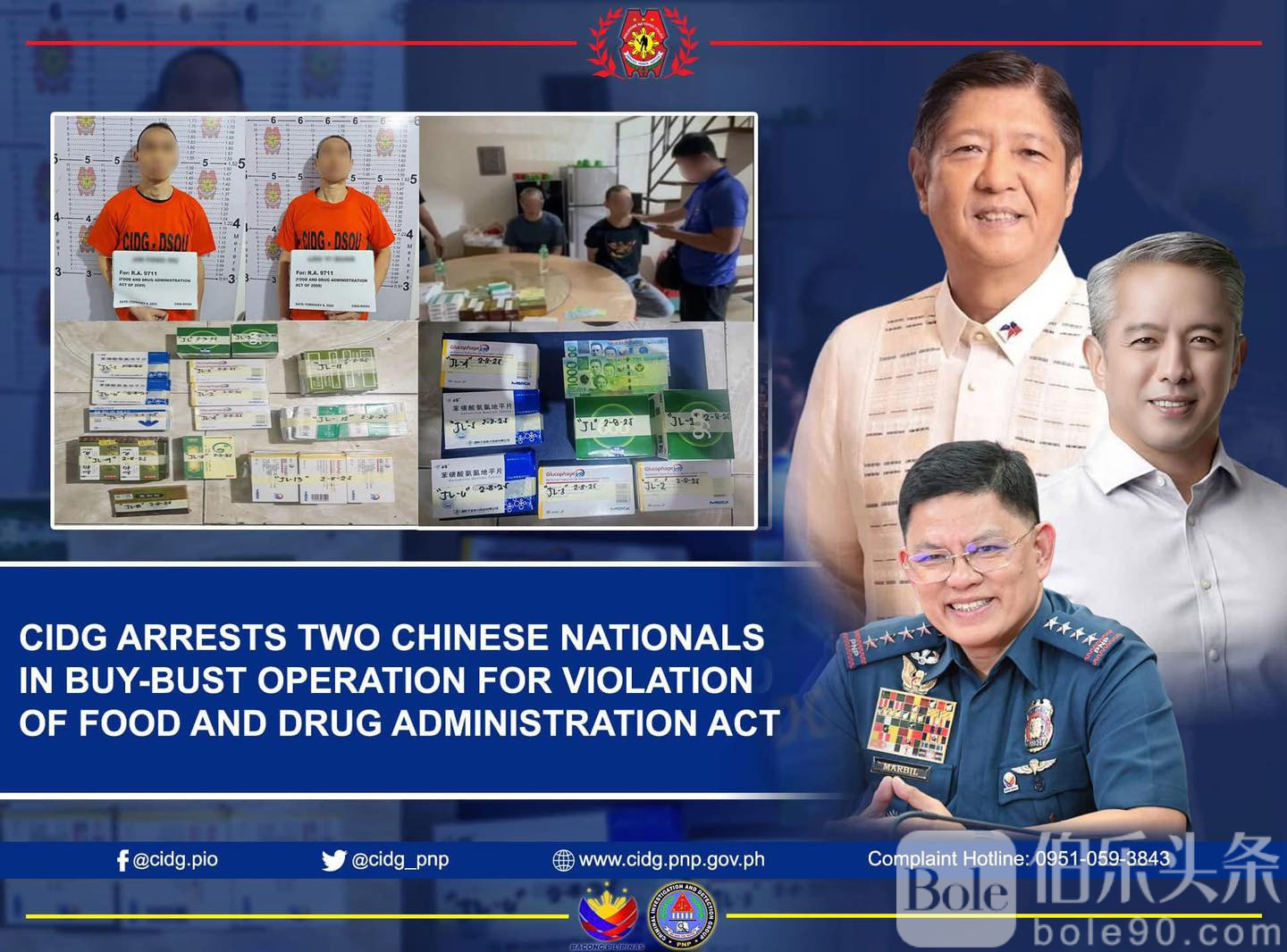 2月8日凌晨12时45分,菲律宾国家警察刑事侦查组(CIDG)侦查与特别行动组(DSOU)在食品药品管理局(FDA)的协助下,于帕拉纳克市(Parañaque)展开诱捕行动,成功逮捕两名涉嫌销售未注册药品的中国籍嫌疑人。