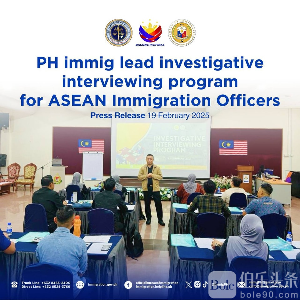伯乐头条专讯:菲律宾移民局(BI)与澳大利亚边境部队学院(ABFC)携手,于2025年2月10日至14日在马来西亚移民学院成功举办了调查面试计划(IIP),为马来西亚移民官员提供专业培训。
