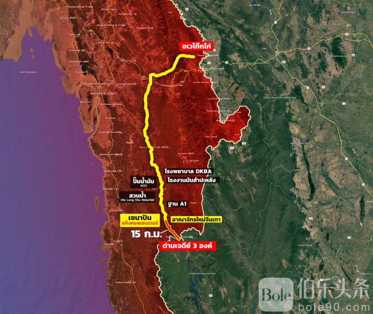 距离Phaya Tong Su 15公里的Zeenapin新电信诈骗基地正在建设中,沿A2公路左侧已被砖墙围起,占地超过250莱。地形低于公路水平,呈山谷状,一直延伸至长山脊线,附近有水源“Tami河”。新电信诈骗基地对面的土地已被平整,预计将用于建造住宅区,以容纳从水谷沟和Phaya Tong Su迁来的中国灰产人员。据消息人士透露,埃万上校已从缅甸购置大型发电机并安装到位,等此次泰中缅电信诈骗打击行动结束后,电诈团伙将迁入此地。