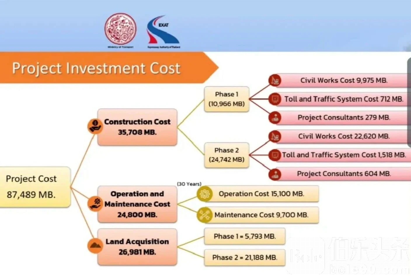 据EXAT透露,普吉岛高速公路项目此前因收益率不足10%导致首轮招标流标。现依据《2019年公私合作法》重启程序,将运营维护(O&M)系统单独招标,涵盖收费系统、交通管控等设施。两阶段O&M系统预算合计24.8亿泰铢,特许经营权期限30年。土建工程由政府全额承担,其中一期卡图-芭东段投资167.59亿泰铢,二期芒迈-考卡奥-卡图段投资459.3亿泰铢。财政部已批准一期方案,将于年内提交内阁审议。