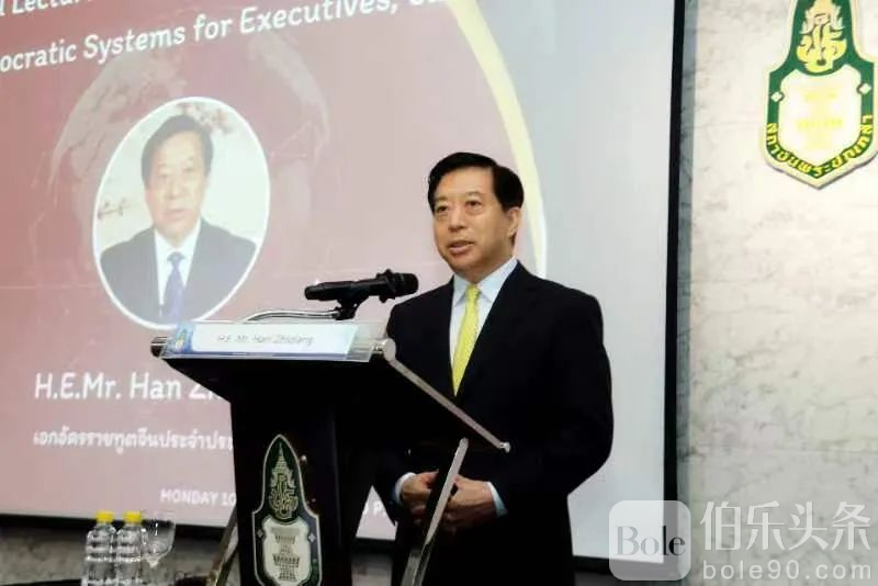 伯乐头条专讯:310日,韩志强大使应邀在泰国拉玛七世王学院民主制度的政治和治理培训班发表演讲。泰国国会议员、政府和军队官员及私营部门管理层近100名学员参加,学院副秘书长易萨拉出席。