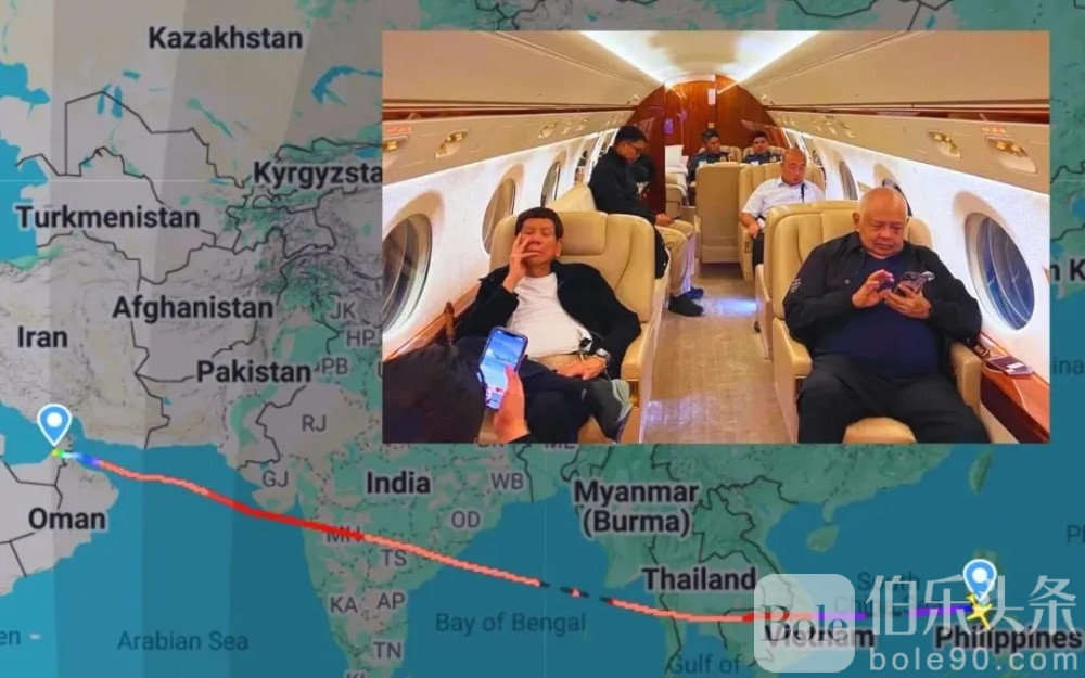 12日上午,杜特尔特乘坐的航班在阿联酋迪拜短暂停留约一小时,并于当地时间凌晨5点(马尼拉时间上午9:15)继续飞往荷兰鹿特丹-海牙机场。根据航班计划,杜特尔特预计将于今日下午4点(马尼拉时间)抵达荷兰。