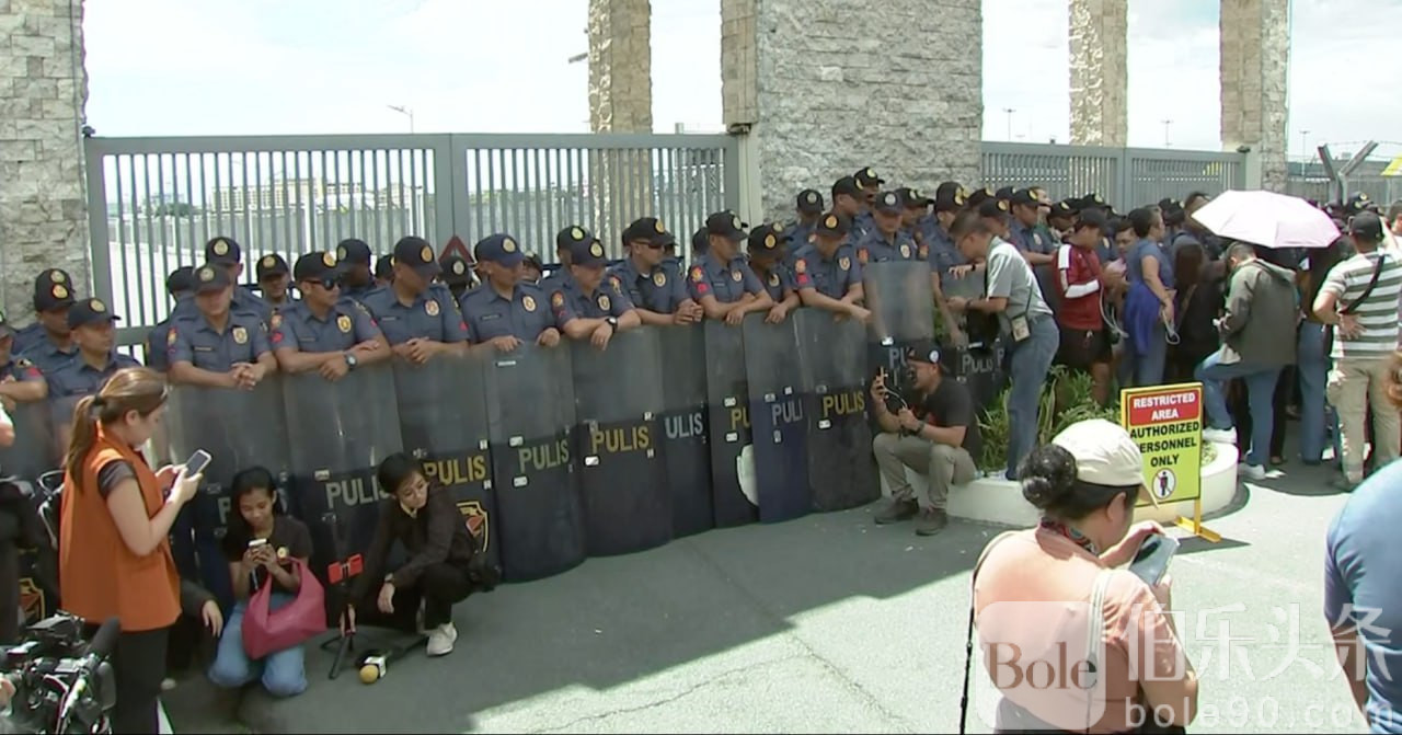 社交媒体上流传的视频显示,杜特尔特在登机前神情严肃,身边围绕着大批荷枪实弹的警察。而在趴赛机场周围,大批支持者聚集抗议,到处都是高机动性警察巡逻队(HPG)。为了防止事态进一步恶化,高机动性警察巡逻队(HPG)还封锁了T3航站楼附近的道路,试图驱散示威者。