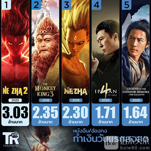 - 2025年《哪吒之魔童闹海》:303万泰铢
