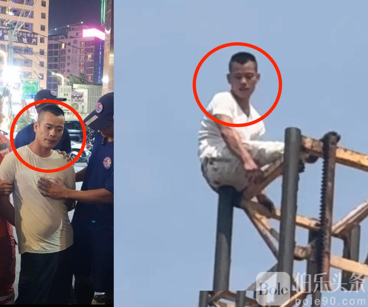 然而今天该男子又攀爬塔吊,爬至最高处后,没有一丝犹豫“跳下”