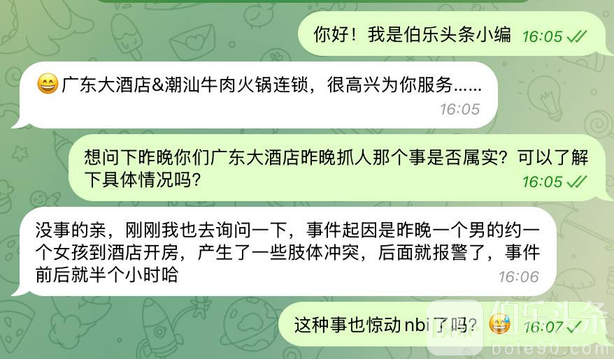 伯乐头条专讯:(伯友投稿)昨晚,马尼拉广东大酒店门口出现执法部门车辆,引发外界关注。今日,广东大酒店方面作出回应,称事件起因是一名男性与女性客人在酒店内发生肢体冲突,随后报警,整个处理过程仅持续半小时。