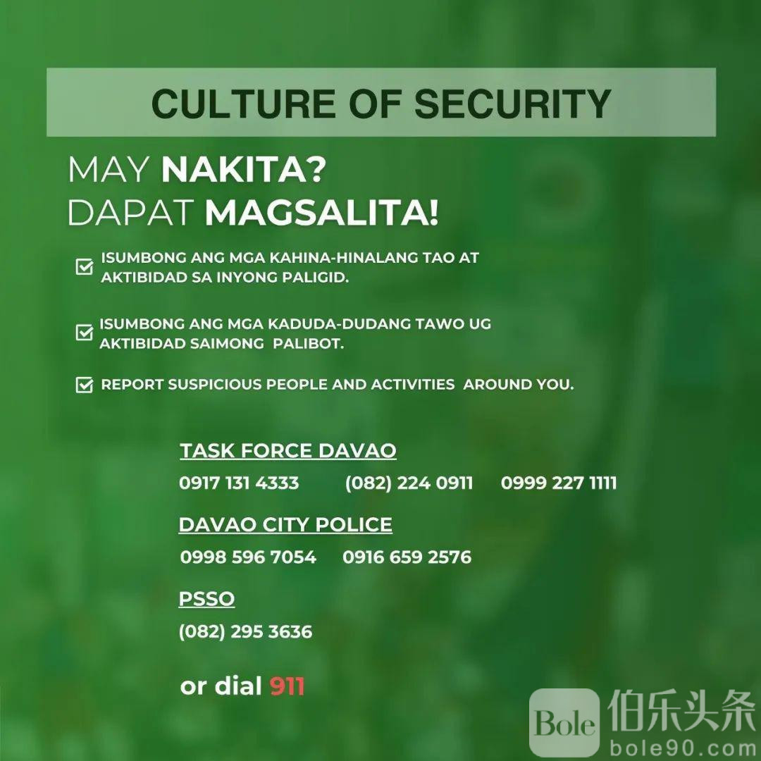 面对 数千名支持者 的集会,达沃大区警察局(Police Regional Office-Davao) 已宣布 全面部署安保措施,确保活动和平进行。该局发言人 凯瑟琳·德拉雷(Catherine Dela Rey) 提醒: