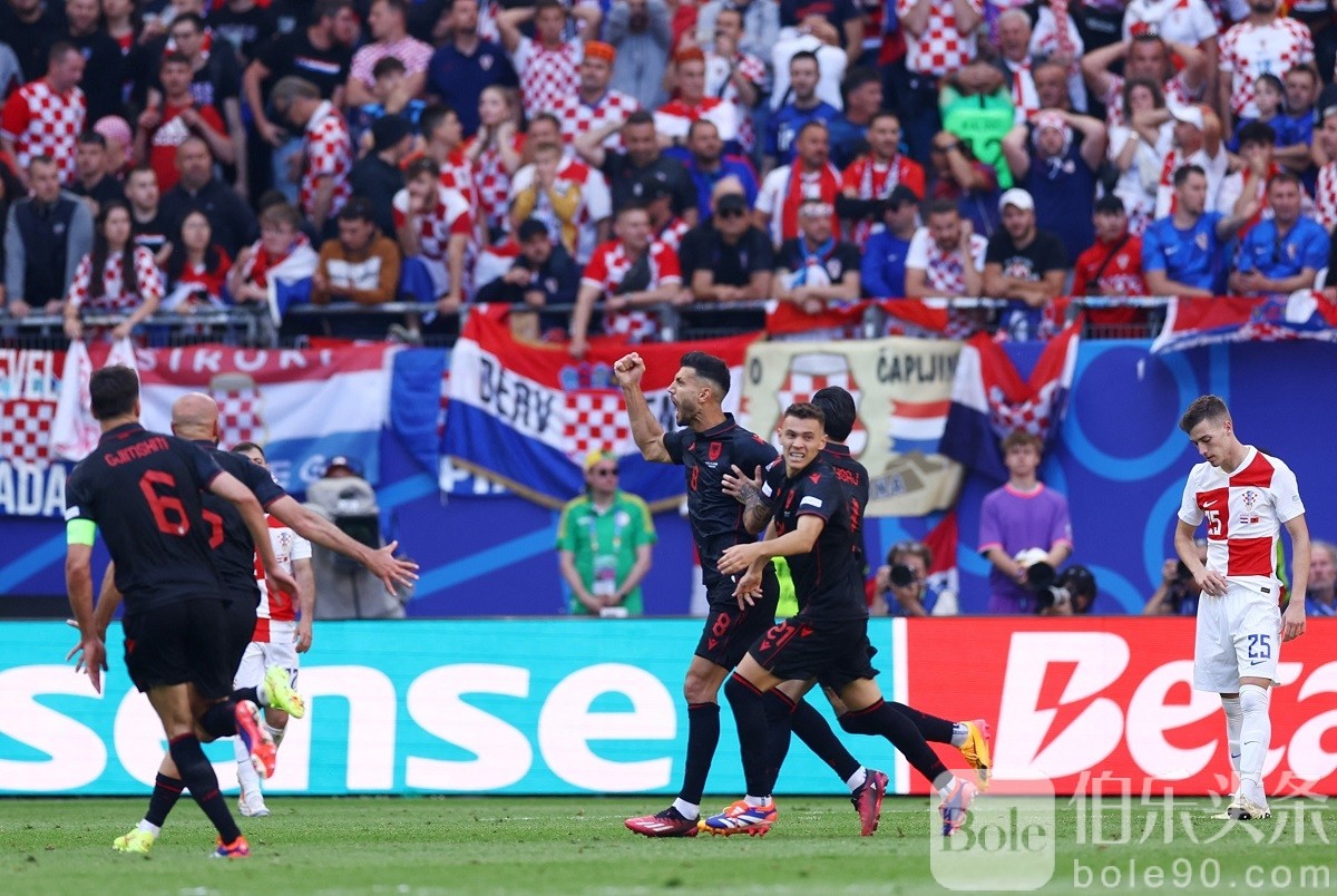 克罗地亚则试图通过控球来掌握比赛节奏,但他们在面对阿尔巴尼亚坚固的防线时显得有些无力。尽管他们在控球率上占据优势,但上半场未能创造出实质性的得分机会。半场结束时,阿尔巴尼亚1-0领先。