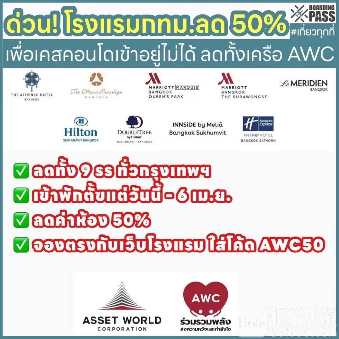 伯乐头条专讯:3月31日,泰国综合地产投资与开发集团AWC发布公告称,其下属9家位于曼谷的酒店将提供50%的折扣,帮助受地震影响的人,同时确认了该9家酒店的安全性。