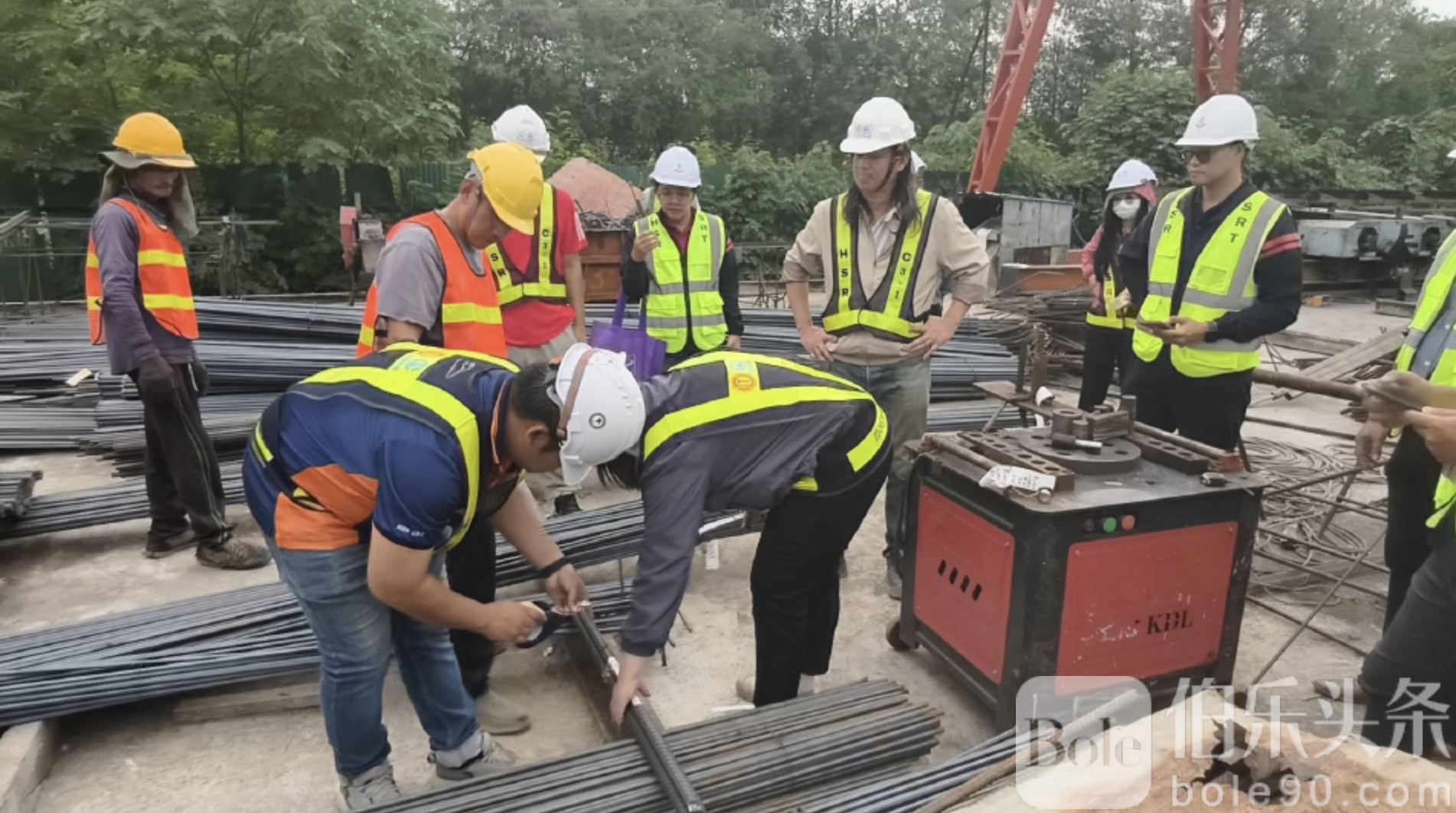 检查结果表明,主要结构未发现裂缝或任何损坏,且在设计时已考虑到抗震能力,能够承受地震震动并符合规定标准。同时,铁路局联合铁路运输局、泰国工业标准局及泰国钢铁与钢铁冶金学会的专家,前往北标府的Muak Lek钢铁厂和Thap Kwang钢铁厂,收集用于第3-1合同段建设的钢材样本,进行工程性能和质量标准的测试。测试项目包括屈服强度、抗拉强度、伸长率、弯曲试验和化学成分。、根据测试结果,所有钢材样本均符合规定标准,符合用于铁路建设材料的工程性能和化学成分要求。钢材到达工地后,项目负责人将再次进行样本测试,确保符合标准后才能进行混凝土浇筑。在施工过程中,项目负责人将严格检查每个环节,确保材料质量和安全,符合合同要求。