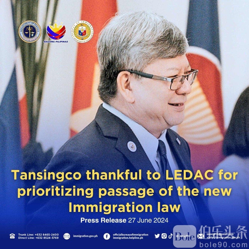 新移民法的提议旨在建立一个更具响应性的移民管理框架,增强移民局在保护国家边境和维护移民权利方面的能力。他补充道:“更新我们的移民法对于有效打击人口贩运、非法招募和其他跨国犯罪至关重要。它还将改善我们对外国游客和菲律宾公民的服务。新法将为移民局提供必要的工具和资源,以解决当代问题,确保国家安全。”