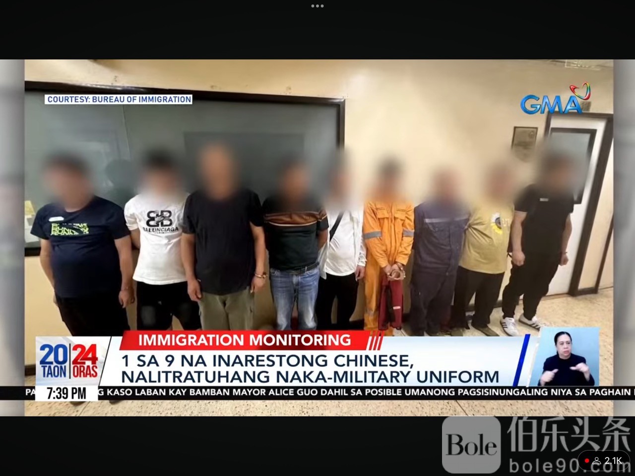 伯乐头条专讯:当局于今日晚间宣布逮捕了 9 名中国公民,该9名中国公民因涉嫌违反签证规定和在马尼拉湾填海工程中从事可疑活动而在帕拉纳克市被捕。
