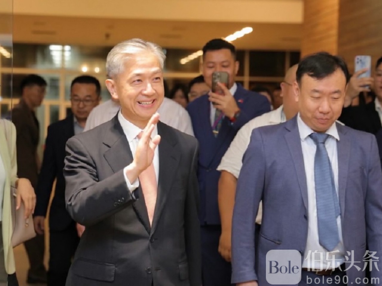伯乐头条专讯:当地时间7月5日晚,中国驻柬埔寨新任大使汪文斌抵达柬埔寨金边,正式履新。柬埔寨外交与国际合作部代表、中国驻柬使馆主要外交官、大批记者及当地华人华侨代表等到机场迎接。