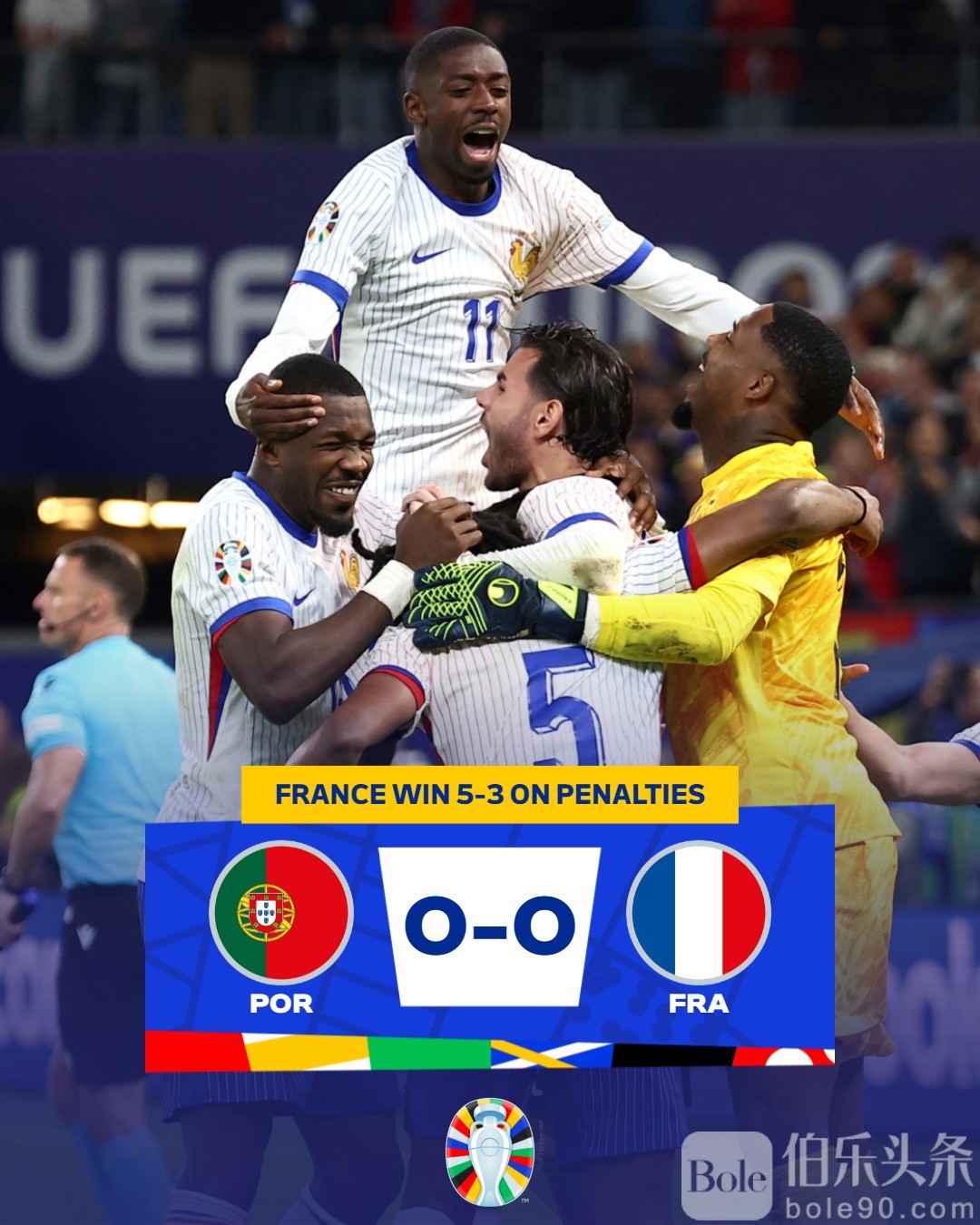 比赛结束法国点球淘汰葡萄牙,晋级欧洲杯半决赛
