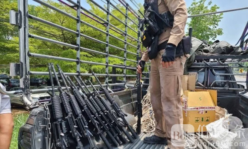 警方在车上发现10支5.56毫米口径的M16步枪、10个弹匣以及14支M79榴弹发射器。