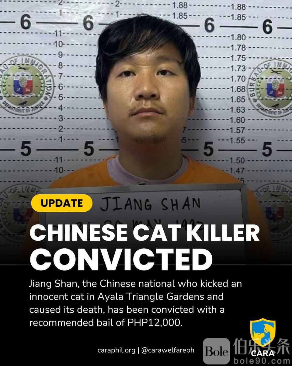 伯乐头条专讯:一名中国籍男子因涉嫌虐待动物导致猫只死亡,近日在菲律宾遭定罪。案件引发社会广泛关注,也再次掀起对于动物保护议题的讨论。