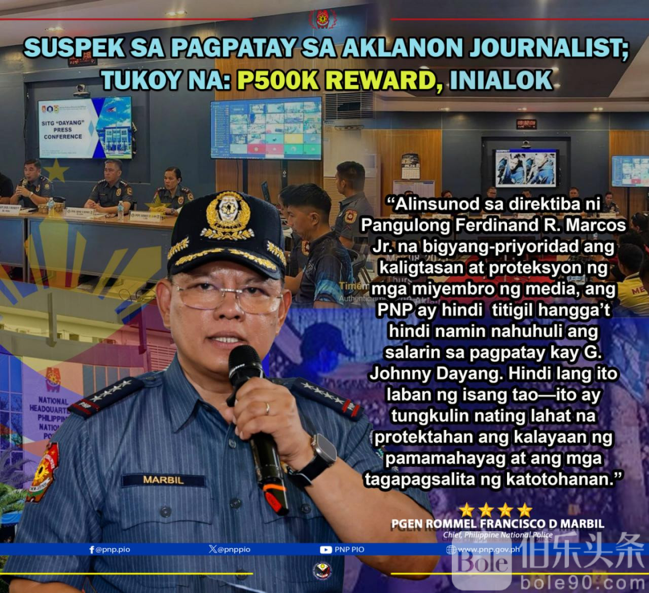 伯乐头条专讯:根据总统费迪南德·马科斯(Ferdinand R. Marcos Jr.)的指示,菲律宾国家警察局(PNP)正在加紧调查资深记者胡安·“约翰尼”·达扬(Juan “Johnny” Dayang)遇害案件,并宣布悬赏50万比索以帮助追捕嫌疑人。