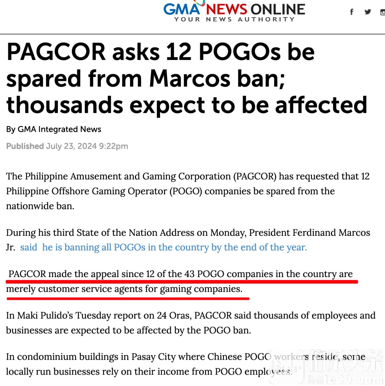 但是吧,PAGCOR又去请求免除 12 家菲律宾离岸博彩运营商(POGO)的全国禁令。理由是这12家是博彩公司的客户服务代理。