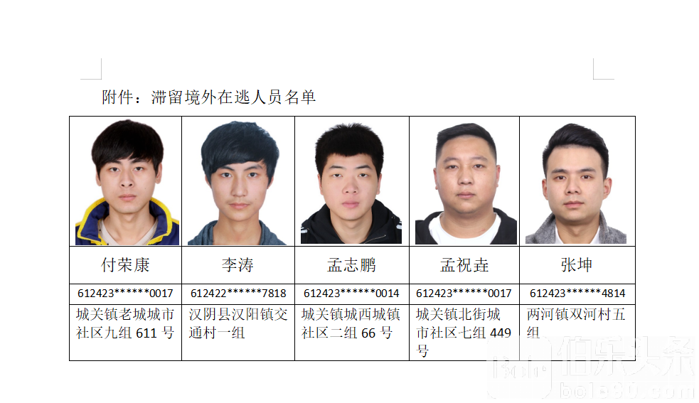 六、欢迎广大群众积极联系公安机关,检举揭发或提供相关信息。凡是提供重要线索或者直接抓获境外在逃人员,视情形给予奖励。举报电话:0915-6328642、0915-6315590。