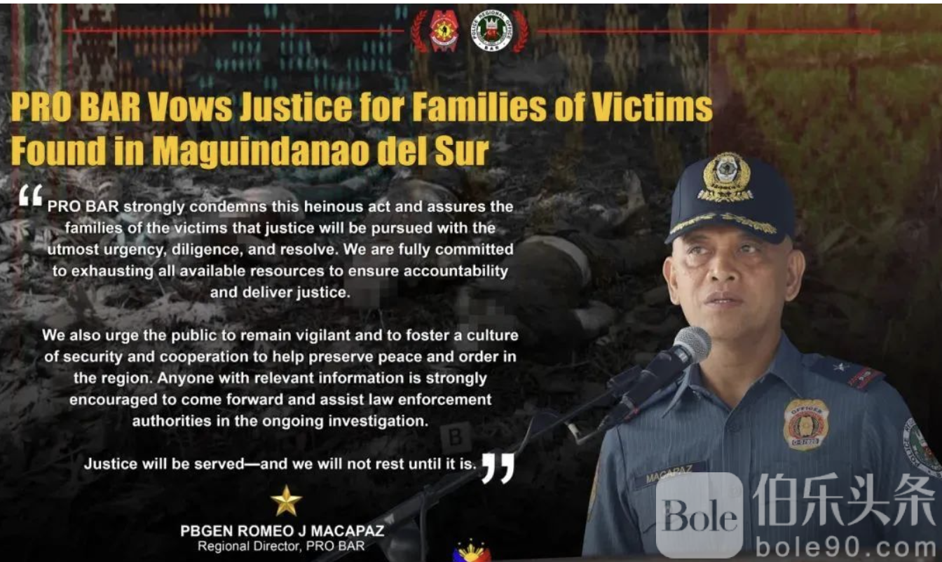 伯乐头条专讯:菲律宾警方日前证实,在经过一周的搜寻后,于南马京达瑙省谢里夫·赛多纳·穆斯塔法镇发现了三名失踪山羊贩子的遗体。死者来自大马尼拉区西南部的八打雁省卡拉塔甘镇,他们此前前往明达瑙地区与客户交易时神秘失联。