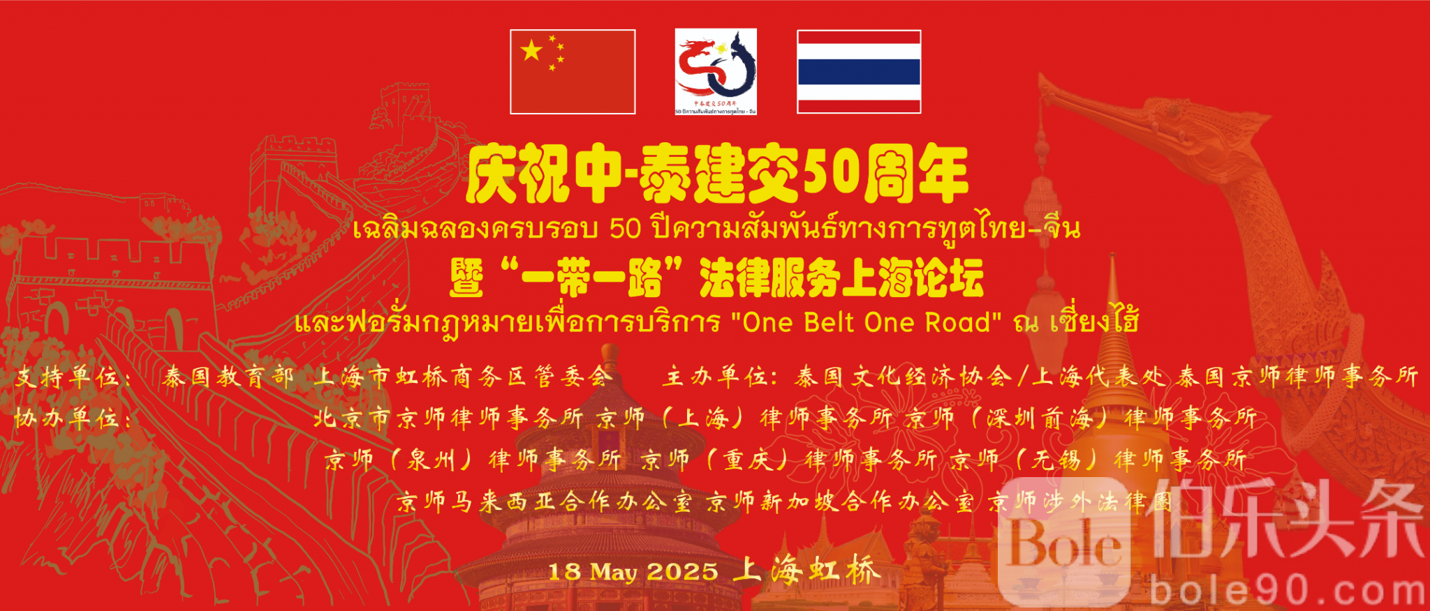 1975年7月1日,中泰正式建立外交关系,2025年迎来两国“友好金色50周年”意义重大!2023年,双边贸易额突破1350亿美元,中国对泰投资超100亿美元,涉及新能源、高铁、5G等领域。“一带一路”倡议提出十年来,中泰法律合作持续深化,2018年两国最高法院已签署司法交流协议。
