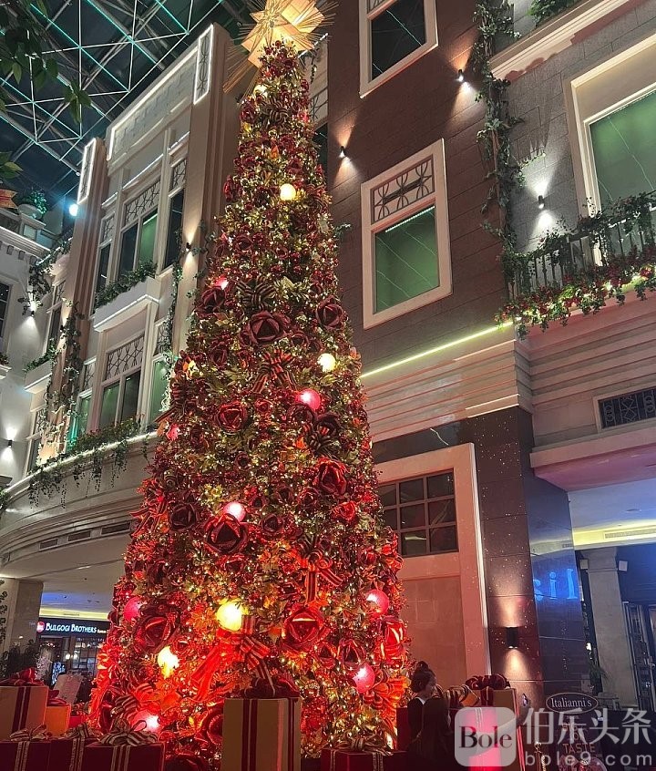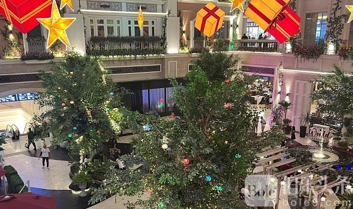 在2层有个小广场,巨大的红色圣诞树很显眼。在4层还专门有2个歌手,唱咏叹调,更增加了节日气氛。