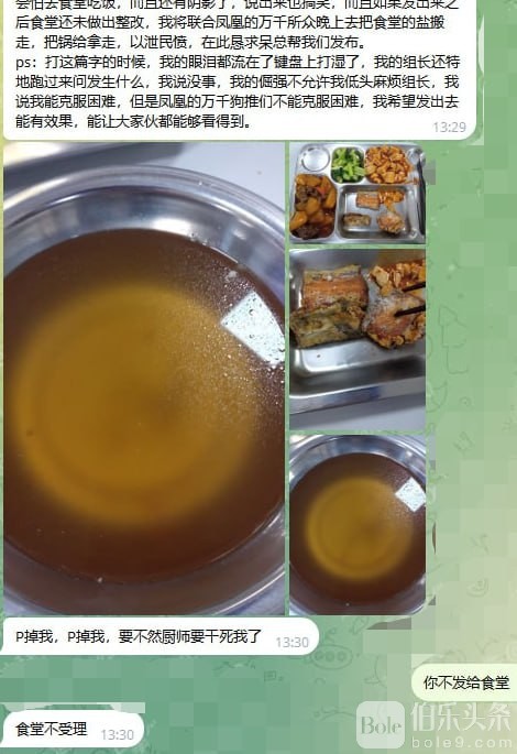 而且如果发出来之后食堂还未做出整改,我将联合凤凰的万千所众晚上去把食堂的盐搬走,把锅给拿走,以泄民愤