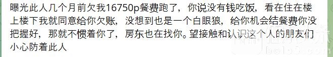 16750的欠费也欠,我晕。还楼上楼下,真的是不怕人家半夜敲门啊。只能说这人太厚脸皮了,反正我是学不来。