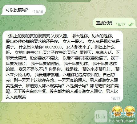飞机上的男的真的很搞笑又贱又骚, 聊天是你。见面的是你。 提出各种各样的要求的还是你😅😅