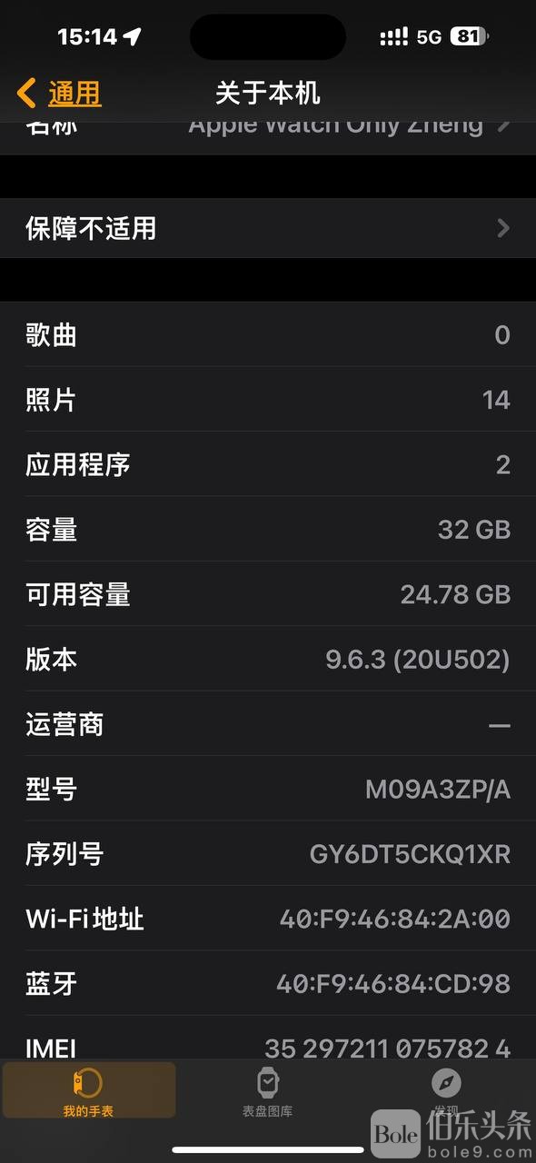 互动论坛 商品买卖 出售苹果手表S6GPS+蜂窝板,现价10000P,海军蓝,九成新有上看的联系