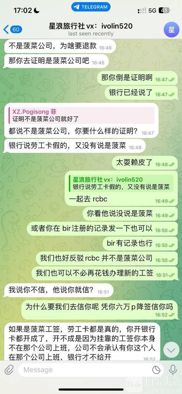 已经几天了一直装死,大家请看好了,记住这家旅行社高价办理的都是菠菜公司的签证,凡是与他合作的大家仔细检查9g公司挂靠情况!