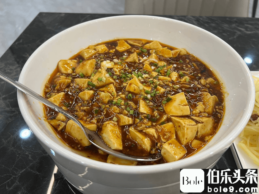 然后是麻婆豆腐,色香味俱全,做法很正宗,豆腐入口很烫,调味上口感丰富,吃到冒汗。十分下饭。