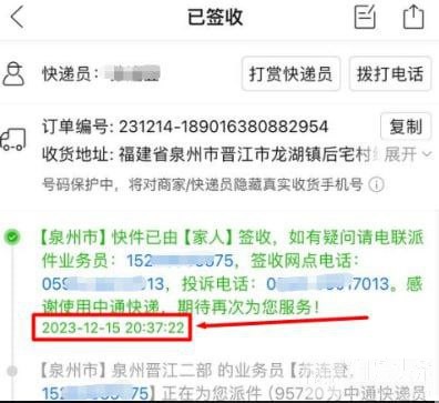 12月在这家快递发了空运,收到货后因到年底,想着海运慢,年后又不知道什么时候恢复,所以下单了一批海运,查看购物平台签收日期有在12月14日,12月15日。