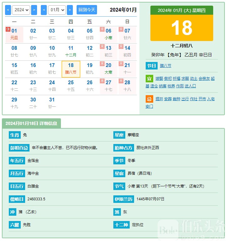 #2024年1月18日 (https://t.me/gt1351),星期四,农历腊月初八,每天60秒简报