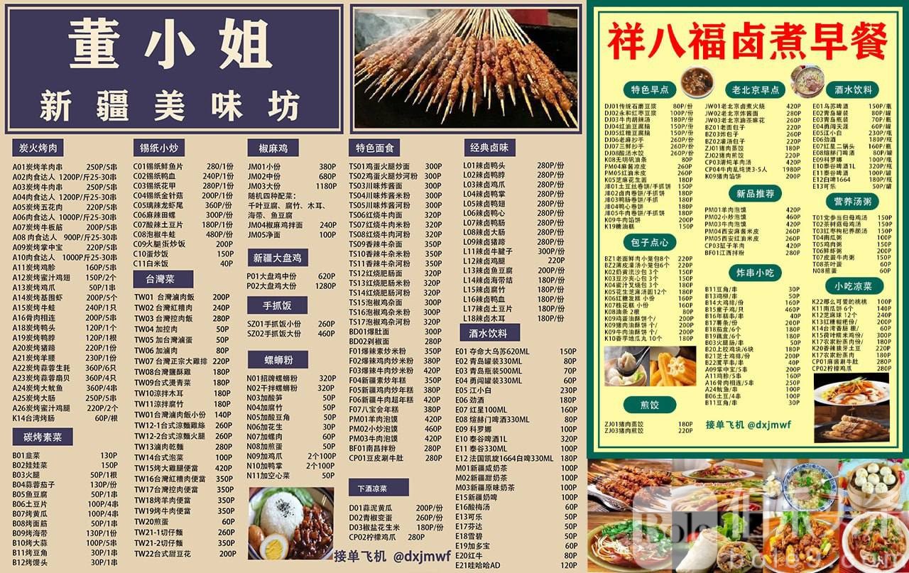 🔥主营 新疆💫烧烤 羊肉串 大盘鸡 🌙手抓饭 椒麻鸡 螺蛳粉🌷 羊肉泡馍 台湾🌾卤肉饭   各种炒面 炒河粉 🪸汤面 米粉 营养汤