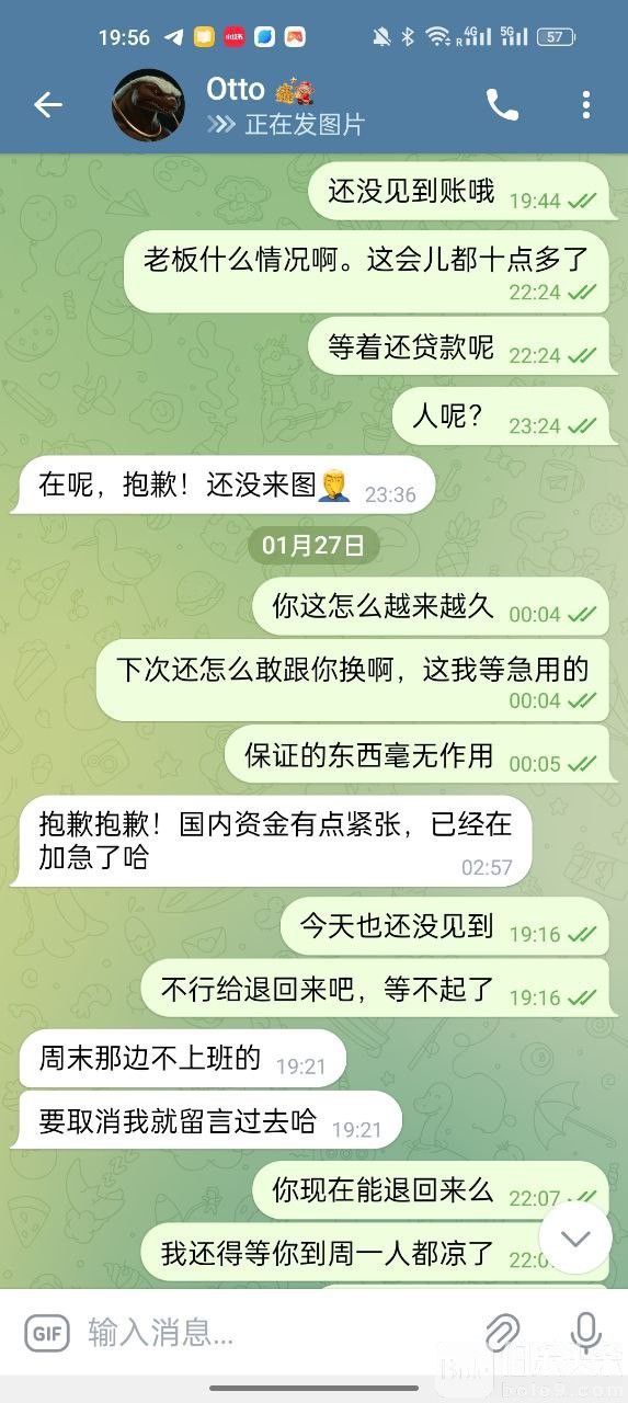 然后一次都不行,卡到周五不到。周末不打款,我他妈等他到周一,也依然是不给你打款,后面还怪别人?换个汇等得跟个孙子一样,换不了就说明换不了,一次次的给你希望第二天又说换不了,上个月给打少钱。