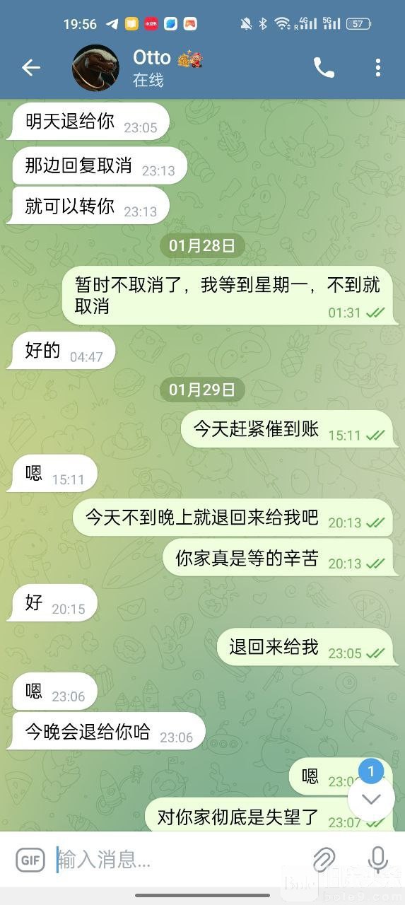 他偏偏这时候就磨你心态。大家注意看时间日期,  这种效率服务,我奉劝大家避免踩雷,发出来警醒大家,出门在外赚点钱不容易,别等哪天给你黑了。后面好说歹说退回来给我了。