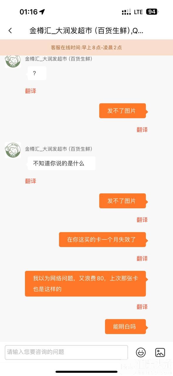 互动论坛 聊天灌水 金樽汇大润发超市实名卡用不了!