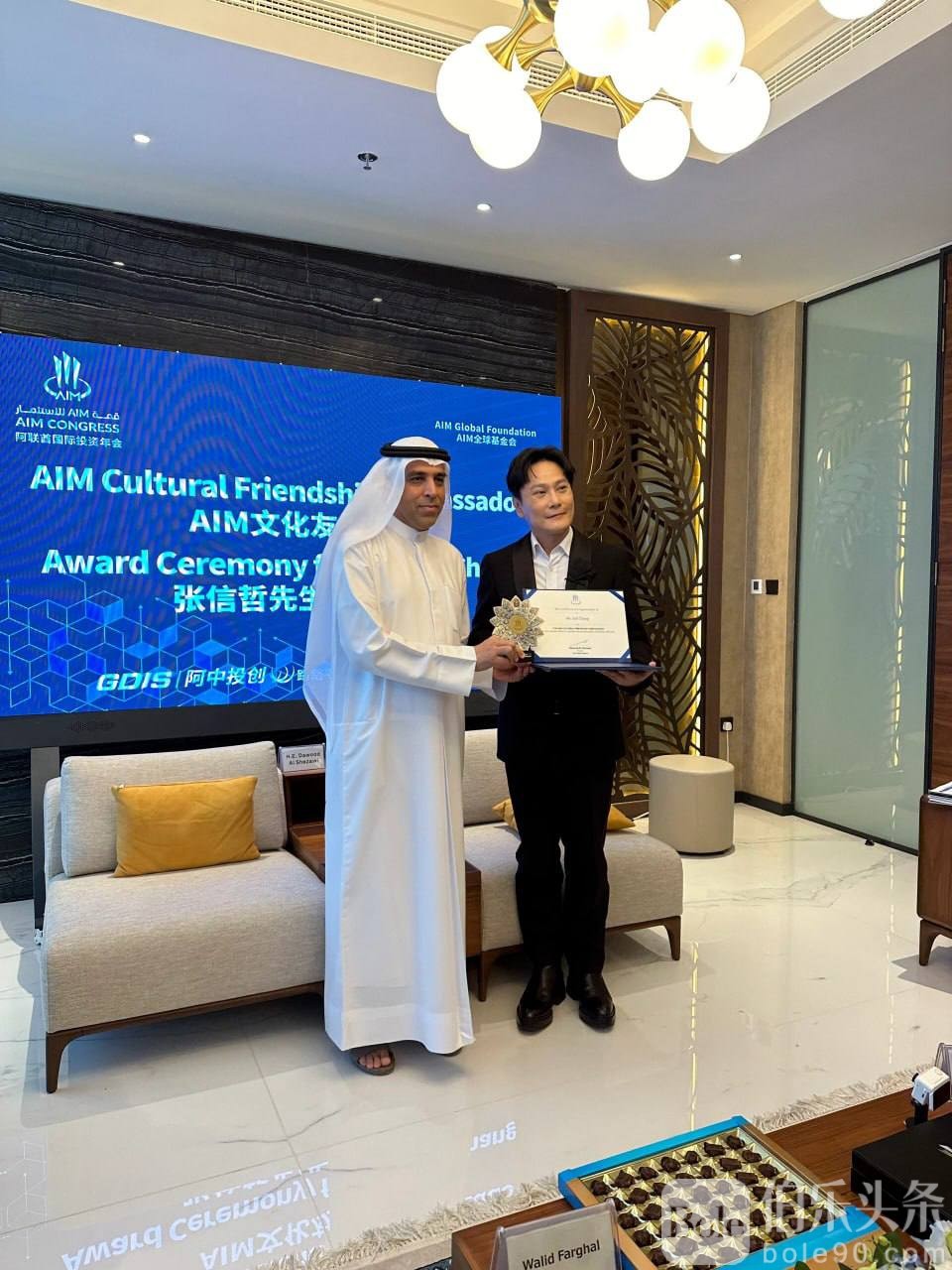互动论坛 聊天灌水 张信哲被授予阿联酋AIM文化友好大使