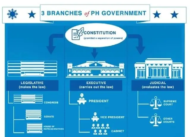 菲律宾实行总统制,行政、立法与司法三权分立,又相互制衡。国家行政权由总统行使,总统、副总统和内阁组成菲律宾共和国中央政府。副总统可连任两届,由选民投票选举产生。总统提名委任各部部长组成内阁(副总统也可被任命为内阁部长)。