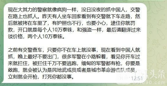 有网友爆料,现在大其力的警察就像疯狗一样,没日没夜的抓中国人,交警在路上也抓人。昨天有人坐车回家看到有交警就下车走路,然后就被拷在车里了,有护照也不行,也要小心,逮住你就罚款,开口就是每个人10万泰铢,和强盗一样,最后请翻译过来谈价格,两个人10万泰铢。