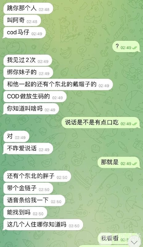 因行为怪异3月9号下午1点向同行查证得知这个杂碎是绑架贩,晚7点杂碎问要处理结果,向杂碎证实是不是绑架贩后,而后没有在搭理,直接拉黑了。