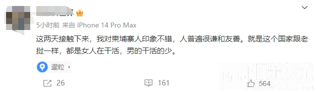 近日,一名中国网友到柬埔寨旅游发出了感慨,他说: