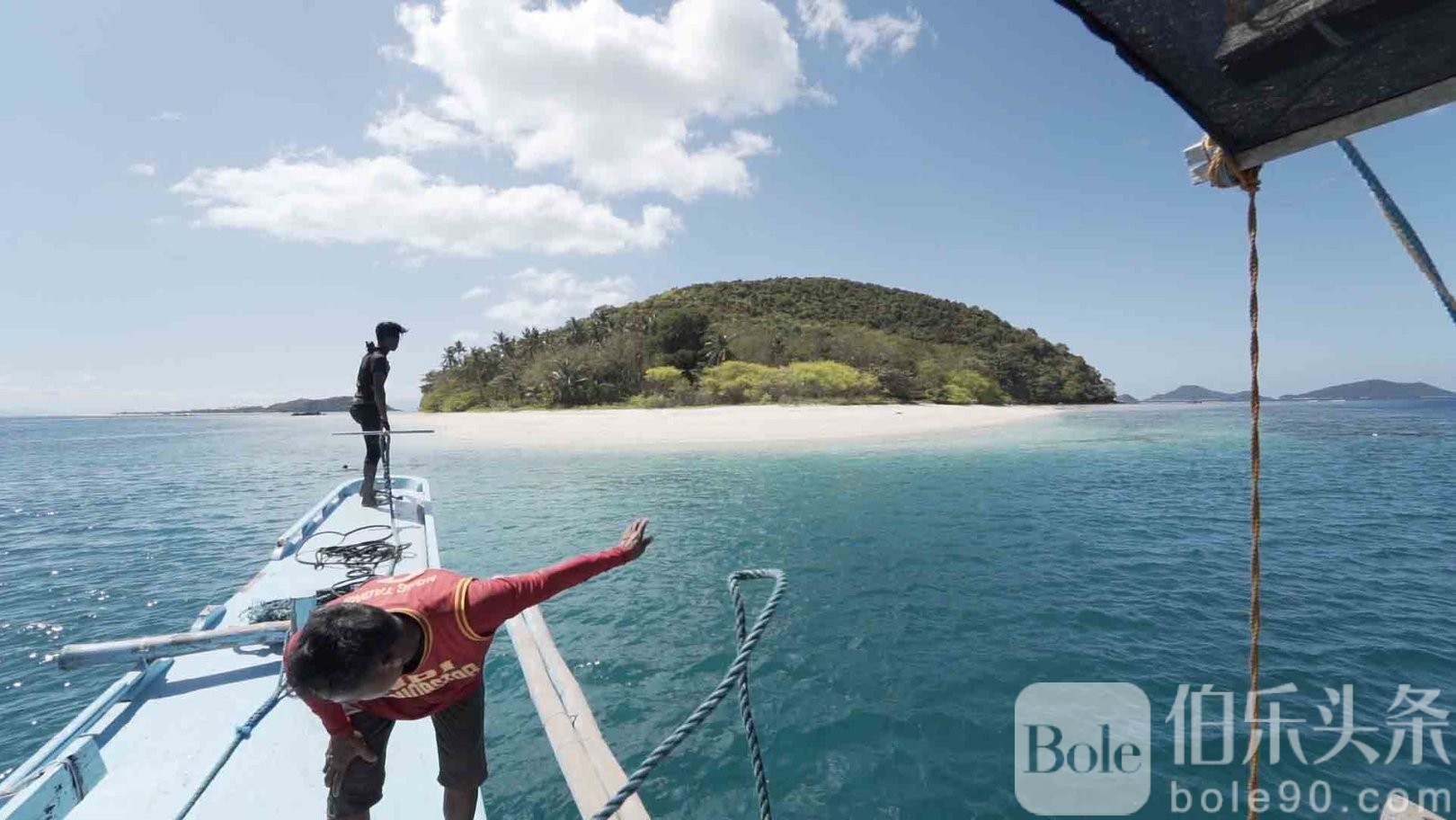 在前往私人岛屿的途中,我们的船员钓鱼作为晚餐