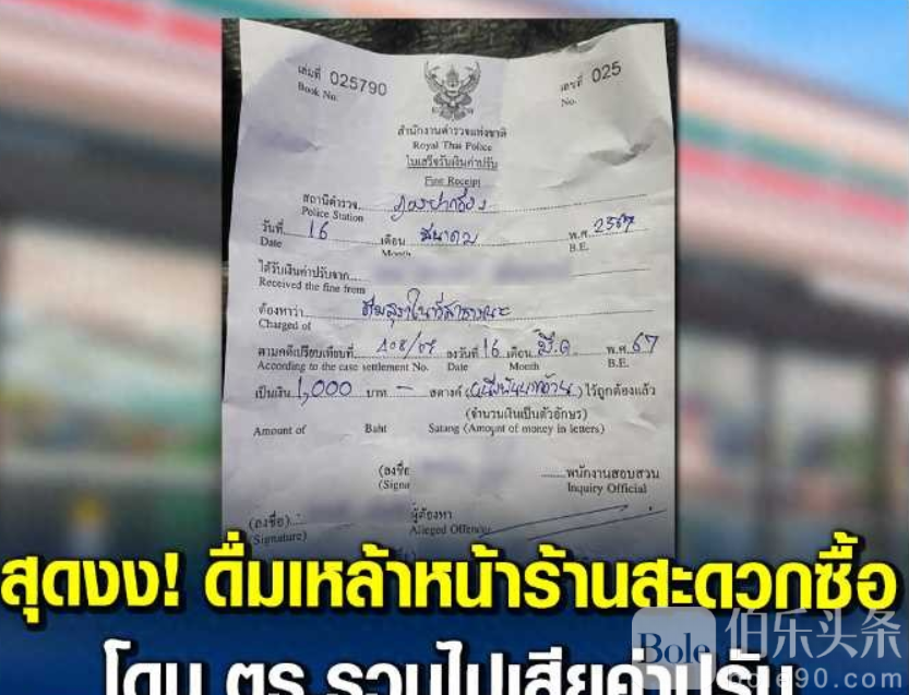 据泰媒消息,近日,泰国某脸书用户通过社交群组发文称,他于3月16日在呵叻府白崇县某工厂前的711便利店门口喝酒,不料竟被警方指控“在公共场所饮酒”并罚款1,000泰铢。