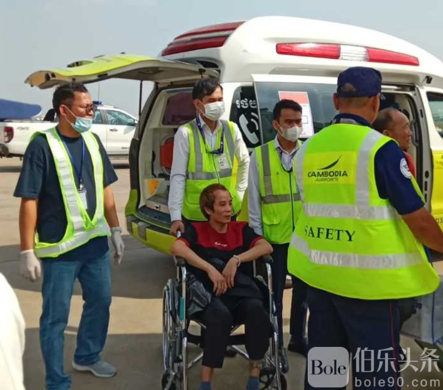 只不过,当初他们是走着进入柬埔寨的,而离开的时候,一个坐着轮椅,一个躺在担架上面。