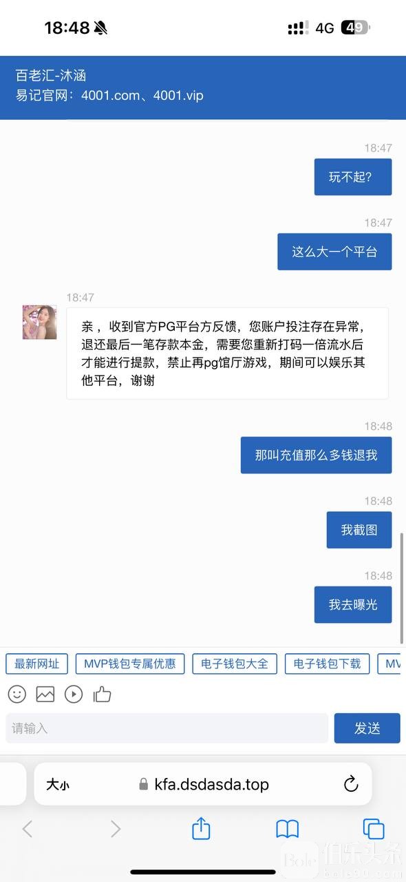 之前本来输20多万的,后面充值一笔打麻将糊了500爆了36万,然后想着回血了就提现,提现很久没到账去找客服说我账户投注异常,玩的是PG台子麻将。这平台真的就不讲武德,还说给我出款了平台赚什么。出款就变成赌博了,我们平台是娱乐平台。第一次遇到这种,赢了就直接杀猪了。