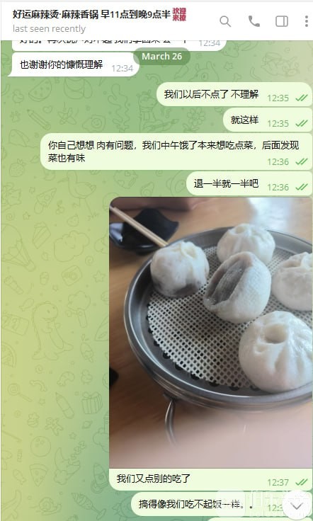 吃了一半还要付一半的钱,没绷住