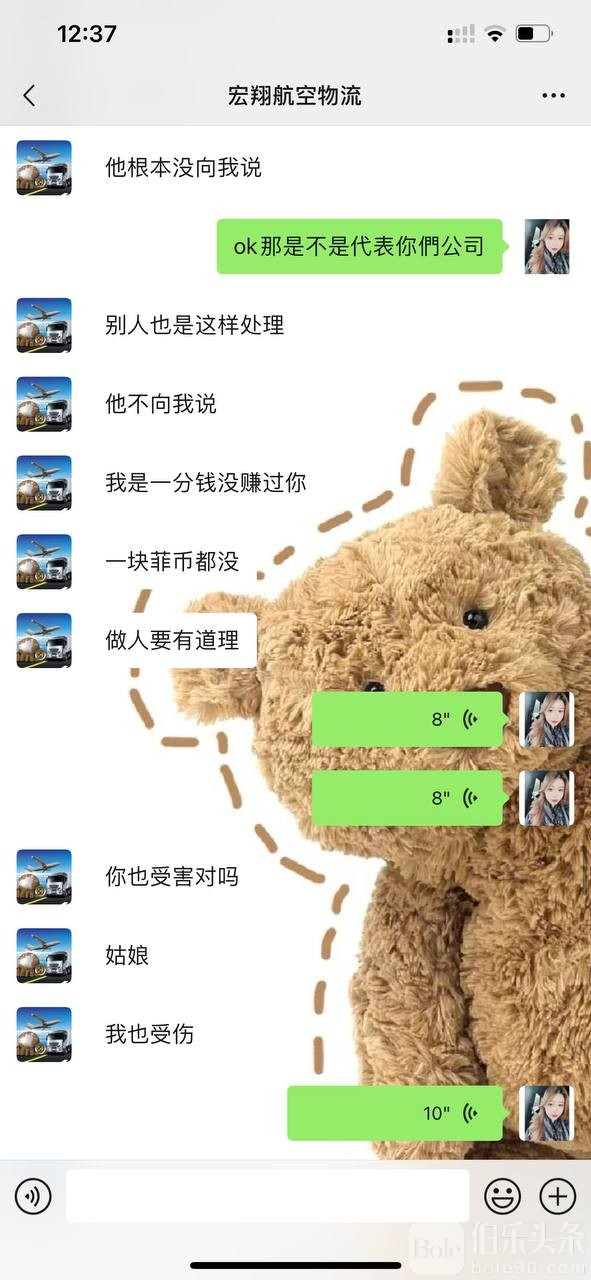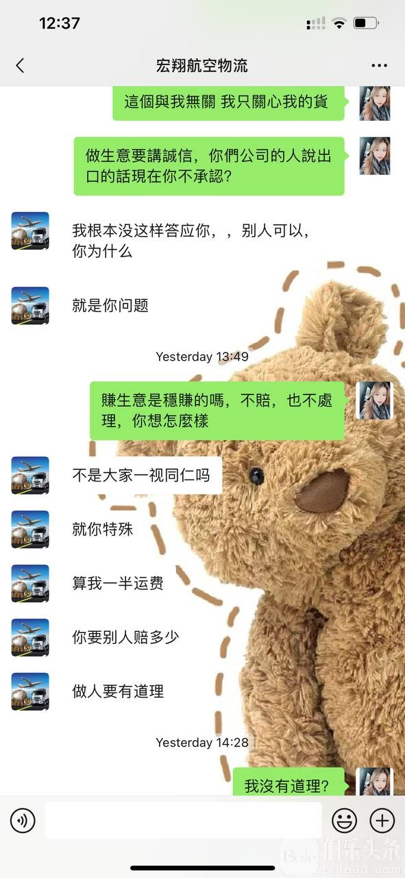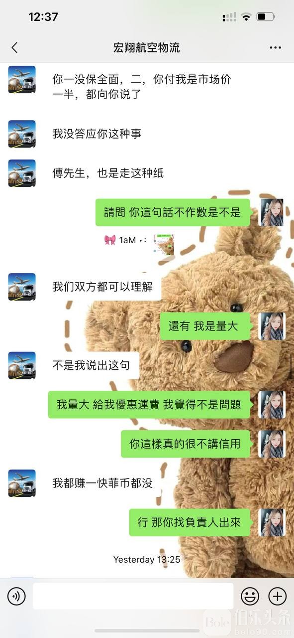 到了这个月才告诉我,被海关扣了,因此我才知道是人肉回去的,请问谁会一下子走一千多盒拍立得回去,海关看了谁不会抓呢?货也不处理,变成了我的问题,一直跟我扯东扯西,后面让他赔付我,对方只肯赔付我50%的价格,而且态度恶劣!!!当初问好的问题,推脱责任,跟我对接的人也不回微信,请大家有宏翔空运的负责人联系方式 麻烦私信我,谢谢🙏🏻